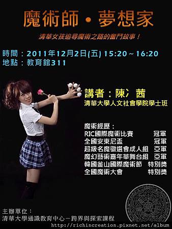 RIC 魔術師陳冫茜受邀至清華大學做演講,和清華的同學們分享她成為魔術師的心路歷程!