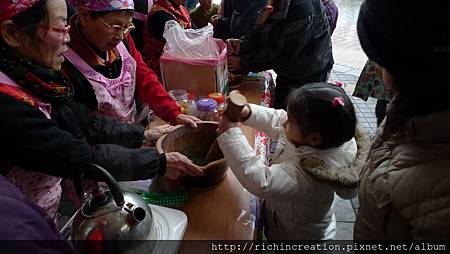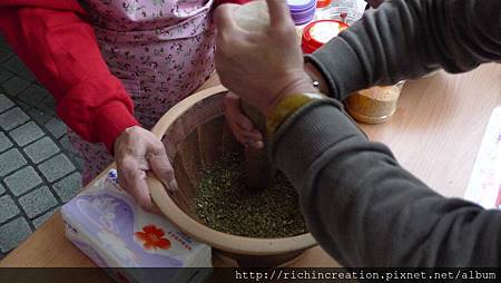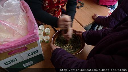 主持人與大家一起體驗客家文化 ,透過客家擂茶、客家手工香包、客家麻糬,一同歡慶2013年元旦。