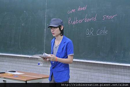 北京魔術大賽冠軍--郭柏辰,將演出CD魔術的技巧傳授給在場學生