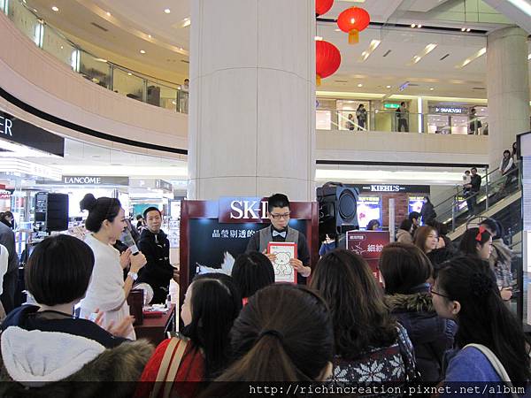 魔術師 施裕淳 受邀至台中新光百貨,為SKII最新的產品發表會演出,除了開場的精采魔術秀外,也變出產品的試用包發送給現場觀眾,氣氛為之瘋狂,與主持人互動時將今年最新的產品"青春亮眼精華乳"從海報上變出來,更請來動物明星圓仔的媽媽圓圓來見證產品的好用,把圓圓的黑眼圈變不見,現場歡笑不斷,藉由魔術讓觀眾朋友與消費者對新的產品有更深的印象及認識。