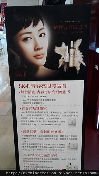 魔術師 張正龍 受邀至高雄漢神百貨,為SKII最新的產品發表會演出,除了開場的精采魔術秀外,也變出產品的試用包發送給現場觀眾,氣氛為之瘋狂,與主持人互動時將今年最新的產品"青春亮眼精華乳"從海報上變出來,更請來動物明星圓仔的媽媽圓圓來見證產品的好用,現場歡笑不斷,藉由魔術讓觀眾朋友與消費者對新的產品有更深的印象及認識。