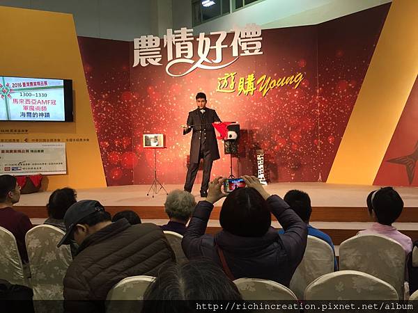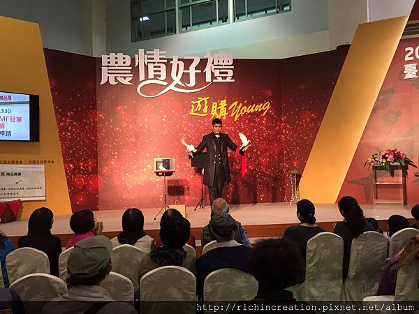 魔術師陳育軒與腹語師施裕淳來到台灣農業精品展為前來參展的民眾帶來精彩的演出,除了有奇幻的魔術之外,還有爆笑的腹語秀與精彩模仿魔術表演,整天都是歡笑連連,